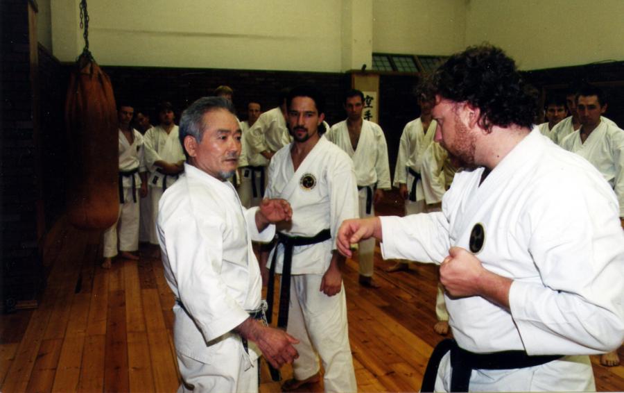 Отцом сенсации стал известный окинавский мастер каратэ и основатель школы Мацубаяси-рю Нагаминэ Сёсин. По его воспоминаниям, приблизительно в августе 1942 г. для исследования генеалогии семьи Мацумура он посетил дом праправнучки мастера в г. На-ха. В ее доме в ящичке буддийского алтаря Нагаминэ обнаружил мэнкёдзё - мастерскую лицензию - по школе Дзигэн-рю и листок цветной бумаги со стихотворением на нем, которые Мацумуре вручил сацумский мастер кэндзюцу Исюин Яситиро. Мэнкёдзё представляло собой свиток. Видимо, из-за небрежного хранения он поразительно выцвел, верхний и нижний края его были очень сильно истрепаны. Кроме того, лицензия была написана скорописью с большими подтеками туши, так что прочесть можно было только отдельные фразы. На листе цветней бумаги было написано стихотворение, которое вручил Мацумуре его наставник Дзигэн-рю:v «Чем больше я гляжу тебе в лицо, тем горше расставание При мысли, что уезжаешь ты на родину... Исюин Яситиро Адресовано Мацумура пэйтин-доно». Нагаминэ скопировал это стихотворение, благодаря чему мы сегодня можем с ним познакомиться, поскольку оригинал погиб во время большой бомбардировки Окинавы 10 октября 1944 г. В тот же день сгорел и дом праправнучки Мацумуры, так что от него не осталось и следа. В страшном пожаре погибла и генеалогия семьи Мацумура, и все предметы, связанные с великим мастером. Школа Дзигэн-рю, которую довелось изучать Мацумуре, была секретной школой княжества Сацума, к изучению которой допускались только вассалы дома Симадзу. Отличительная особенность ее - необычайная агрессивность: за исключением техники боя против копейщика, во всех остальных случаях Дзигэн-рю настаивает на решительной атаке противника. По этой причине в ней даже не существует оборонительных позиций. При этом Дзигэн-рю требует, чтобы фехтовальщик был способен первым же ударом рассечь противника «на полы» и таким образом мгновенно окончить бой. Для выработки такого сокрушительного удара используется упражнение татикиути - «удары по стоящему дереву». В нем фехтовальщик использует дубовую палку с неснятой корой диаметром около 3 см и длиной около 120 см, которой попеременно наносит удары справа и слева по стоящему дереву или столбу. Нормой считается ежедневное повторение 11000 таких ударов - 3000 утром и 8000 вечером. Последователи Дзигэн-рю полагают, что фехтовальщик может «поставить» базовые движения за 3 года таких тренировок. В период военных столкновений середины XIX в. самураи из Са-цумы, прошедшие подготовку по школе Дзигэн-рю, сражавшиеся на стороне антисёгунской коалиции, наводили ужас на своих врагов. Даже такой прекрасный фехтовальщик, как Хидзиката Сайдзо, заместитель командира карательного отряда сёгуната Синсэнгуми, возможно, знакомого читателю по художественному фильму «Табу», предостерегал своих подчиненных от стычек с бойцами Дзигэн-рю. Эти предостережения диктовались опытом и кровью, пролитой в боях с самураями Симадзу: в одной из стычек с воинами Синсэнгуми известный мастер Дзигэн-рю того времени Накамура Ханд-зиро за несколько минут прикончил девятерых противников и ушел безнаказанным. Фудзивара Рёдзо выдвинул две гипотезы относительно того, при каких обстоятельствах Мацумура начал изучать школу Дзигэн-рю. Обе они связаны с представительством Сацумы на Окинаве, которое возглавлял я
